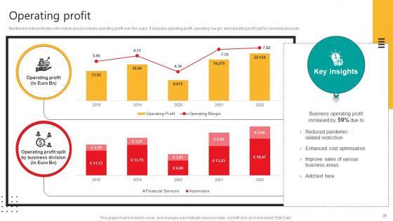 Mentioned slide pro9vides information about company operating profit over the years. It includes operating profit, operating margin, and operating profit split by business divisions.Retrieve professionally designed Operating Profit Automobile Development Company Profile CP SS V to effectively convey your message and captivate your listeners. Save time by selecting pre-made slideshows that are appropriate for various topics, from business to educational purposes. These themes come in many different styles, from creative to corporate, and all of them are easily adjustable and can be edited quickly. Access them as PowerPoint templates or as Google Slides themes. You do not have to go on a hunt for the perfect presentation because Slidegeeks got you covered from everywhere. Mentioned slide pro9vides information about company operating profit over the years. It includes operating profit, operating margin, and operating profit split by business divisions.