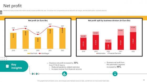 Mentioned slide provides information about company profit for the year. It includes key components such as net profit, net margin, and net profit split by business division.The Net Profit Automobile Development Company Profile CP SS V is a compilation of the most recent design trends as a series of slides. It is suitable for any subject or industry presentation, containing attractive visuals and photo spots for businesses to clearly express their messages. This template contains a variety of slides for the user to input data, such as structures to contrast two elements, bullet points, and slides for written information. Slidegeeks is prepared to create an impression. Mentioned slide provides information about company profit for the year. It includes key components such as net profit, net margin, and net profit split by business division.
