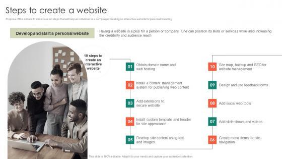 Purpose of this slide is to showcase ten steps that will help an individual or a company in creating an interactive website for personal branding.Get a simple yet stunning designed Steps To Create A Website Entrepreneurs Roadmap To Effective Infographics Pdf. It is the best one to establish the tone in your meetings. It is an excellent way to make your presentations highly effective. So, download this PPT today from Slidegeeks and see the positive impacts. Our easy-to-edit Steps To Create A Website Entrepreneurs Roadmap To Effective Infographics Pdf can be your go-to option for all upcoming conferences and meetings. So, what are you waiting for Grab this template today. Purpose of this slide is to showcase ten steps that will help an individual or a company in creating an interactive website for personal branding.