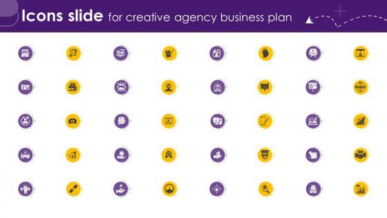 Do you have to make sure that everyone on your team knows about any specific topic I yes, then you should give Icons Slide For Creative Agency Business Plan BP SS V a try. Our experts have put a lot of knowledge and effort into creating this impeccable Icons Slide For Creative Agency Business Plan BP SS V. You can use this template for your upcoming presentations, as the slides are perfect to represent even the tiniest detail. You can download these templates from the Slidegeeks website and these are easy to edit. So grab these today Our Icons Slide For Creative Agency Business Plan BP SS V are topically designed to provide an attractive backdrop to any subject. Use them to look like a presentation pro.