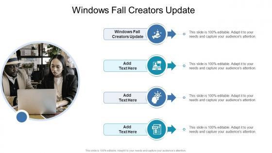 Presenting our innovatively designed set of slides titled Windows Fall Creators Update In Powerpoint And Google Slides Cpb This completely editable PowerPoint graphic exhibits Windows Fall Creators Update that will help you convey the message impactfully. It can be accessed with Google Slides and is available in both standard screen and widescreen aspect ratios. Apart from this, you can download this well structured PowerPoint template design in different formats like PDF, JPG, and PNG. So, click the download button now to gain full access to this PPT design. Our Windows Fall Creators Update In Powerpoint And Google Slides Cpb are topically designed to provide an attractive backdrop to any subject. Use them to look like a presentation pro.