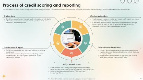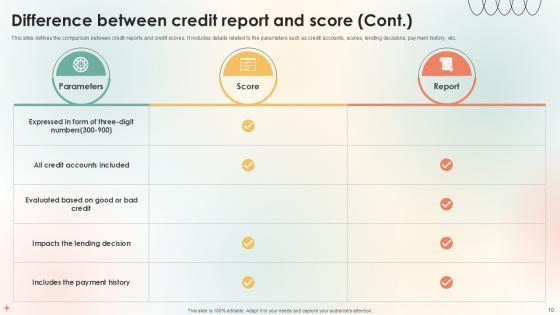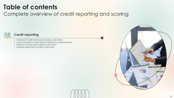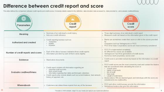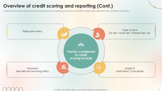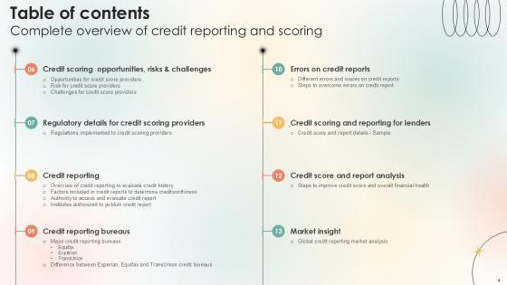 Use this Complete Overview Of Credit Reporting And Scoring Ppt Slide Fin CD V to ensure the business world gets to know you as a presentation expert with tremendous recall value. With its focus on providing the worlds best designs to highlight business ideas that have the potential to change the world, this PPT Template is sure to win you clients. The complete deck in one hundred seven slides is a compendium of information, structured in a manner that provides the best framework for a presentation. Use this completely editable and customizable presentation to make an impact and improve your order book. Download now. Our Complete Overview Of Credit Reporting And Scoring Ppt Slide Fin CD V are topically designed to provide an attractive backdrop to any subject. Use them to look like a presentation pro.