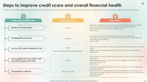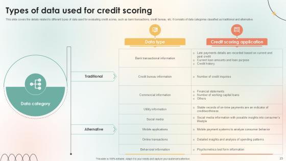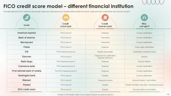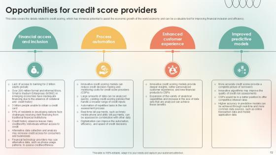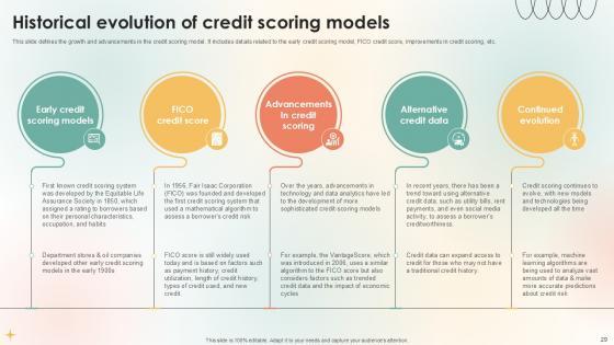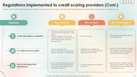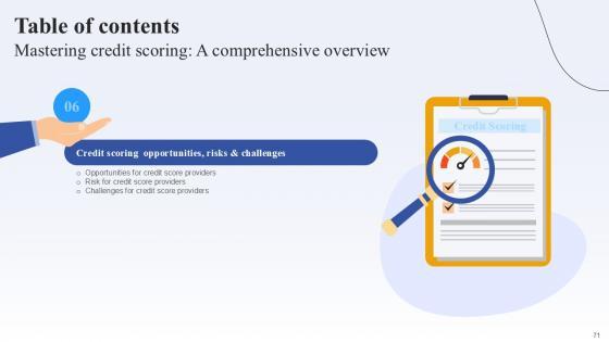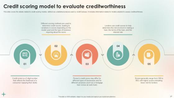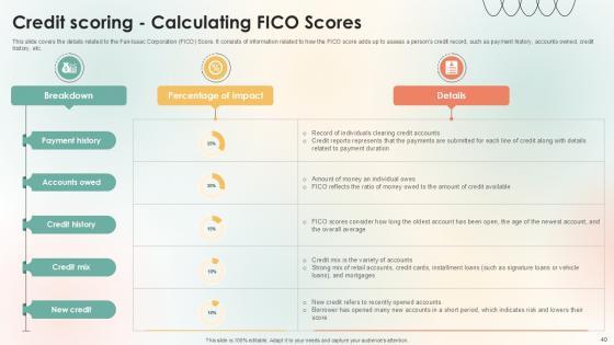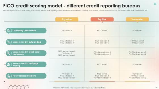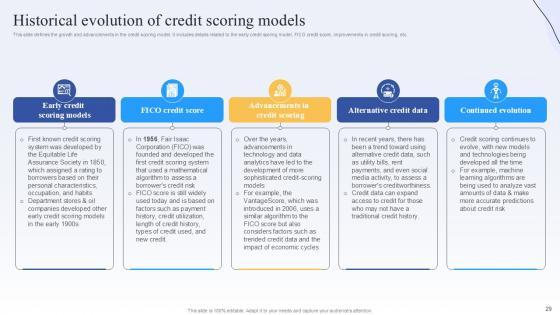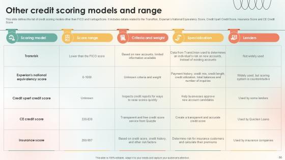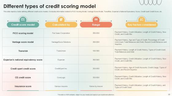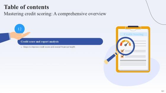 This Mastering Credit Scoring A Comprehensive Overview Ppt Example Fin CD V is a primer on how to capitalize on business opportunities through planning, innovation, and market intelligence. The content-ready format of the complete deck will make your job as a decision-maker a lot easier. Use this ready-made PowerPoint Template to help you outline an extensive and legible plan to capture markets and grow your company on the right path, at an exponential pace. What is even more amazing is that this presentation is completely editable and 100 percent customizable. This one hundred seven-slide complete deck helps you impress a roomful of people with your expertise in business and even presentation. Craft such a professional and appealing presentation for that amazing recall value. Download now. Our Mastering Credit Scoring A Comprehensive Overview Ppt Example Fin CD V are topically designed to provide an attractive backdrop to any subject. Use them to look like a presentation pro.