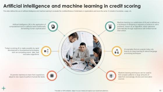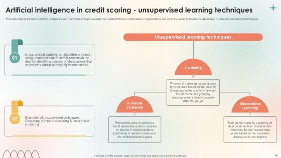 This slide showcases ai-based credit scoring that can help financial institutions to evaluate loan eligibility of applicant. It also highlights various benefits of ai-based credit scoring that are fraud detection, fast credit evaluation and enhanced customer experience.Slidegeeks is one of the best resources for PowerPoint templates. You can download easily and regulate Overview And Benefits Of Ai Credit Scoring Artificial Intelligence Applications Formats Pdf for your personal presentations from our wonderful collection. A few clicks is all it takes to discover and get the most relevant and appropriate templates. Use our Templates to add a unique zing and appeal to your presentation and meetings. All the slides are easy to edit and you can use them even for advertisement purposes. This slide showcases ai based credit scoring that can help financial institutions to evaluate loan eligibility of applicant. It also highlights various benefits of ai based credit scoring that are fraud detection, fast credit evaluation and enhanced customer experience.
