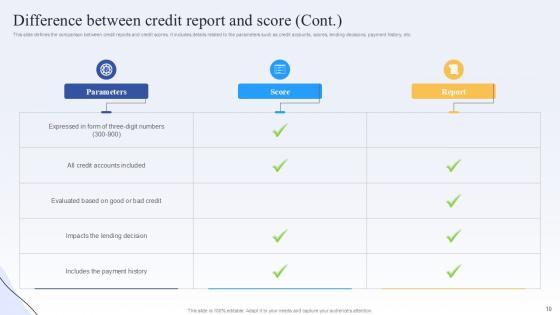 If designing a presentation takes a lot of your time and resources and you are looking for a better alternative, then this Credit Score Meter Ppt PowerPoint Presentation Complete Deck With Slides is the right fit for you. This is a prefabricated set that can help you deliver a great presentation on the topic. All the ten slides included in this sample template can be used to present a birds-eye view of the topic. These slides are also fully editable, giving you enough freedom to add specific details to make this layout more suited to your business setting. Apart from the content, all other elements like color, design, theme are also replaceable and editable. This helps in designing a variety of presentations with a single layout. Not only this, you can use this PPT design in formats like PDF, PNG, and JPG once downloaded. Therefore, without any further ado, download and utilize this sample presentation as per your liking.