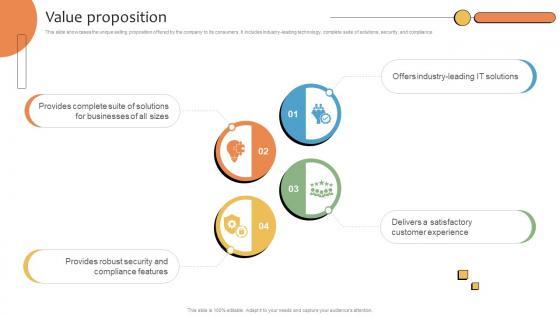 This slide showcases the unique selling proposition offered by the company to its consumers. It includes industry-leading technology, complete suite of solutions, security, and compliance. Are you in need of a template that can accommodate all of your creative concepts This one is crafted professionally and can be altered to fit any style. Use it with Google Slides or PowerPoint. Include striking photographs, symbols, depictions, and other visuals. Fill, move around, or remove text boxes as desired. Test out color palettes and font mixtures. Edit and save your work, or work with colleagues. Download Value Proposition CRMS Platform Business Model BMC SS V and observe how to make your presentation outstanding. Give an impeccable presentation to your group and make your presentation unforgettable. This slide showcases the unique selling proposition offered by the company to its consumers. It includes industry-leading technology, complete suite of solutions, security, and compliance.