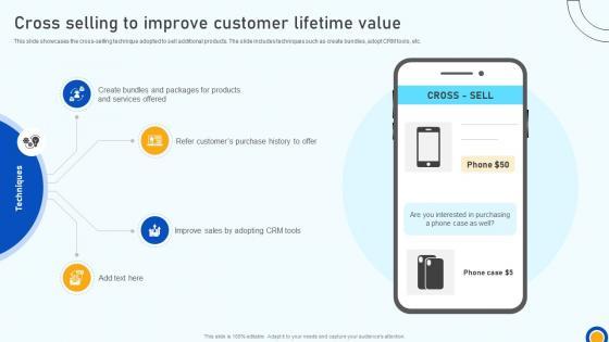 This slide showcases the cross-selling technique adopted to sell additional products. The slide includes techniques such as create bundles, adopt CRM tools, etc. Get a simple yet stunning designed Digital Marketing Strategies Cross Selling To Improve Customer Lifetime Value SA SS V. It is the best one to establish the tone in your meetings. It is an excellent way to make your presentations highly effective. So, download this PPT today from Slidegeeks and see the positive impacts. Our easy-to-edit Digital Marketing Strategies Cross Selling To Improve Customer Lifetime Value SA SS V can be your go-to option for all upcoming conferences and meetings. So, what are you waiting for Grab this template today. This slide showcases the cross-selling technique adopted to sell additional products. The slide includes techniques such as create bundles, adopt CRM tools, etc.
