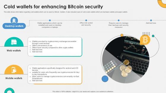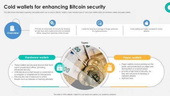 This slide shows information regarding cold wallets which can be used by Bitcoin holders. It also includes types of cold crypto wallets which are hardware wallets and paper wallets. Do you have an important presentation coming up Are you looking for something that will make your presentation stand out from the rest Look no further than Cold Wallets For Enhancing Everything About Bitcoin PPT Example Fin SS V. With our professional designs, you can trust that your presentation will pop and make delivering it a smooth process. And with Slidegeeks, you can trust that your presentation will be unique and memorable. So why wait Grab Cold Wallets For Enhancing Everything About Bitcoin PPT Example Fin SS V today and make your presentation stand out from the rest This slide shows information regarding cold wallets which can be used by Bitcoin holders. It also includes types of cold crypto wallets which are hardware wallets and paper wallets.
