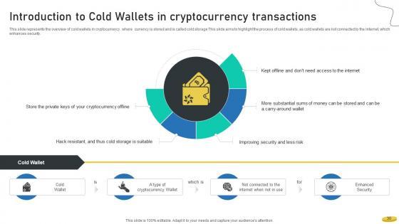 This slide represents the overview of cold wallets in cryptocurrency. where currency is stored and is called cold storage This slide aims to highlight the process of cold wallets, as cold wallets are not connected to the internet, which enhances security.Create an editable Introduction To Cold Wallets In Cryptocurrency Transactions Cryptocurrency Management With Blockchain that communicates your idea and engages your audience. Whether you are presenting a business or an educational presentation, pre-designed presentation templates help save time. Introduction To Cold Wallets In Cryptocurrency Transactions Cryptocurrency Management With Blockchain is highly customizable and very easy to edit, covering many different styles from creative to business presentations. Slidegeeks has creative team members who have crafted amazing templates. So, go and get them without any delay. This slide represents the overview of cold wallets in cryptocurrency. where currency is stored and is called cold storage This slide aims to highlight the process of cold wallets, as cold wallets are not connected to the internet, which enhances security.