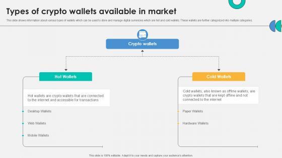 This slide shows information about various types of wallets which can be used to store and manage digital currencies which are hot and cold wallets. These wallets are further categorized into multiple categories. If you are looking for a format to display your unique thoughts, then the professionally designed Types Of Crypto Wallets Available Everything About Bitcoin PPT Example Fin SS V is the one for you. You can use it as a Google Slides template or a PowerPoint template. Incorporate impressive visuals, symbols, images, and other charts. Modify or reorganize the text boxes as you desire. Experiment with shade schemes and font pairings. Alter, share or cooperate with other people on your work. Download Types Of Crypto Wallets Available Everything About Bitcoin PPT Example Fin SS V and find out how to give a successful presentation. Present a perfect display to your team and make your presentation unforgettable. This slide shows information about various types of wallets which can be used to store and manage digital currencies which are hot and cold wallets. These wallets are further categorized into multiple categories.