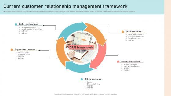 Mentioned slide shows existing CRM framework of the firm covering stages namely get the customer, deliver the product, bill the customer, support the customer and build your business. From laying roadmaps to briefing everything in detail, our templates are perfect for you. You can set the stage with your presentation slides. All you have to do is download these easy to edit and customizable templates. Optimizing Business Integration Current Customer Relationship Guidelines Pdf will help you deliver an outstanding performance that everyone would remember and praise you for. Do download this presentation today. Mentioned slide shows existing CRM framework of the firm covering stages namely get the customer, deliver the product, bill the customer, support the customer and build your business.