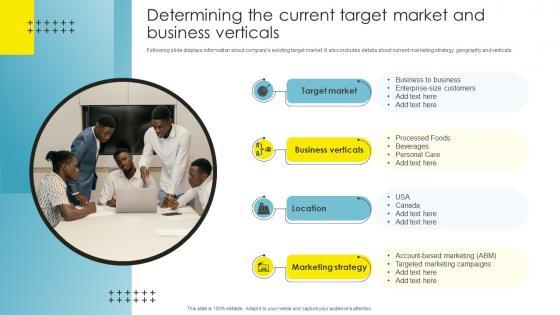 Following slide displays information about companys existing target market. It also includes details about current marketing strategy, geography and verticals. If you are looking for a format to display your unique thoughts, then the professionally designed Determining The Current Target Market Strategic Brand Management Sample Pdf is the one for you. You can use it as a Google Slides template or a PowerPoint template. Incorporate impressive visuals, symbols, images, and other charts. Modify or reorganize the text boxes as you desire. Experiment with shade schemes and font pairings. Alter, share or cooperate with other people on your work. Download Determining The Current Target Market Strategic Brand Management Sample Pdf and find out how to give a successful presentation. Present a perfect display to your team and make your presentation unforgettable. Following slide displays information about companys existing target market. It also includes details about current marketing strategy, geography and verticals.