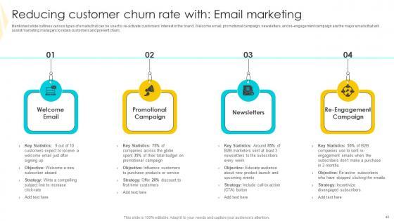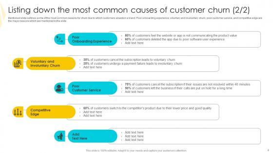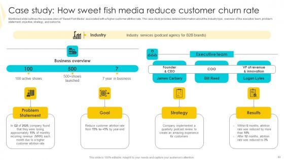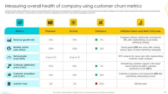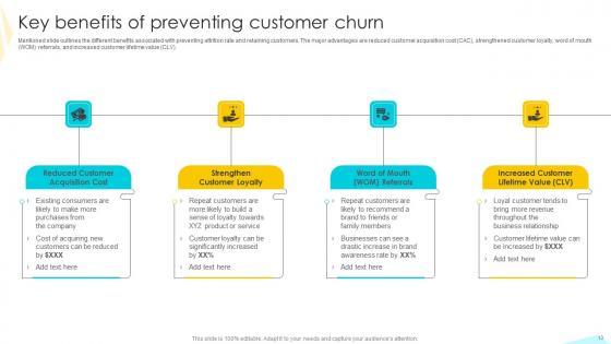 This Strategies To Mitigate Customer Churn And Foster Brand Advocacy Complete Deck is a primer on how to capitalize on business opportunities through planning, innovation, and market intelligence. The content ready format of the complete deck will make your job as a decision-maker a lot easier. Use this ready made PowerPoint Template to help you outline an extensive and legible plan to capture markets and grow your company on the right path, at an exponential pace. What is even more amazing is that this presentation is completely editable and 100 percent customizable. This Sixty four slide complete deck helps you impress a roomful of people with your expertise in business and even presentation. Craft such a professional and appealing presentation for that amazing recall value. Download now. Our Strategies To Mitigate Customer Churn And Foster Brand Advocacy Complete Deck are topically designed to provide an attractive backdrop to any subject. Use them to look like a presentation pro.