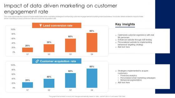 This slide represents the impact of implemented data driven marketing strategies in enhancing customer engagement and building brand awareness. It includes details related to impact of data driven marketing on lead conversion rate and customer acquisition rate. Do you have an important presentation coming up Are you looking for something that will make your presentation stand out from the rest Look no further than Impact Of Data Driven Marketing On Customer Engagement Rate Brochure PDF. With our professional designs, you can trust that your presentation will pop and make delivering it a smooth process. And with Slidegeeks, you can trust that your presentation will be unique and memorable. So why wait Grab Impact Of Data Driven Marketing On Customer Engagement Rate Brochure PDF today and make your presentation stand out from the rest