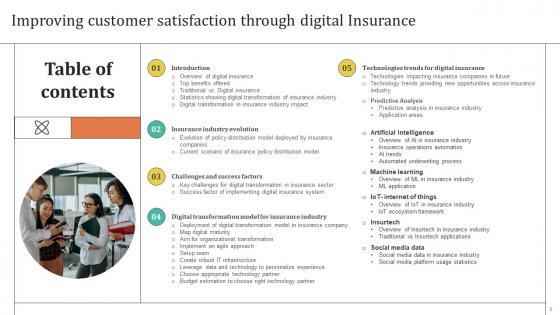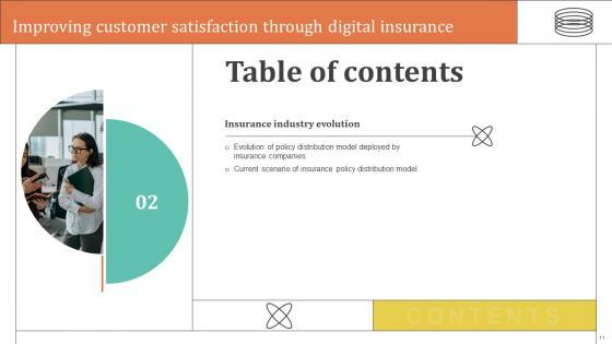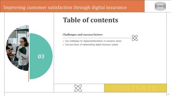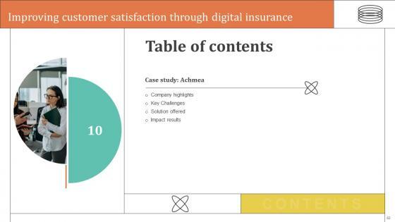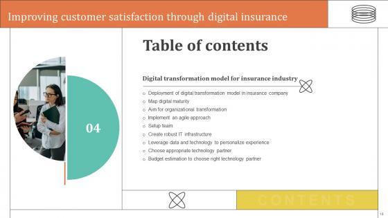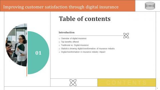 Do you know about Slidesgeeks Table Of Contents Improving Customer Satisfaction Through Digital Insurance These are perfect for delivering any kind od presentation. Using it, create PowerPoint presentations that communicate your ideas and engage audiences. Save time and effort by using our pre-designed presentation templates that are perfect for a wide range of topic. Our vast selection of designs covers a range of styles, from creative to business, and are all highly customizable and easy to edit. Download as a PowerPoint template or use them as Google Slides themes. Our Table Of Contents Improving Customer Satisfaction Through Digital Insurance are topically designed to provide an attractive backdrop to any subject. Use them to look like a presentation pro.