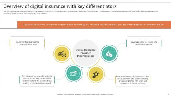 This Improving Customer Satisfaction Through Digital Insurance Complete Deck is a primer on how to capitalize on business opportunities through planning, innovation, and market intelligence. The content-ready format of the complete deck will make your job as a decision-maker a lot easier. Use this ready-made PowerPoint Template to help you outline an extensive and legible plan to capture markets and grow your company on the right path, at an exponential pace. What is even more amazing is that this presentation is completely editable and 100 percent customizable. This ninty four slide complete deck helps you impress a roomful of people with your expertise in business and even presentation. Craft such a professional and appealing presentation for that amazing recall value. Download now. Our Improving Customer Satisfaction Through Digital Insurance Complete Deck are topically designed to provide an attractive backdrop to any subject. Use them to look like a presentation pro.