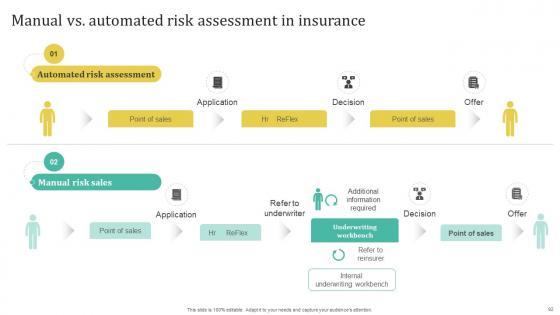 The slide showcases a framework outlining expedition of underwriting process with AI based technology to boost efficiency and automate workflows. Key components consists of data collection, evaluation, assessment, decision, etc. Present like a pro with Improving Customer Satisfaction Automated Underwriting Process Through AI. Create beautiful presentations together with your team, using our easy-to-use presentation slides. Share your ideas in real-time and make changes on the fly by downloading our templates. So whether you are in the office, on the go, or in a remote location, you can stay in sync with your team and present your ideas with confidence. With Slidegeeks presentation got a whole lot easier. Grab these presentations today. The slide showcases a framework outlining expedition of underwriting process with AI based technology to boost efficiency and automate workflows. Key components consists of data collection, evaluation, assessment, decision, etc.
