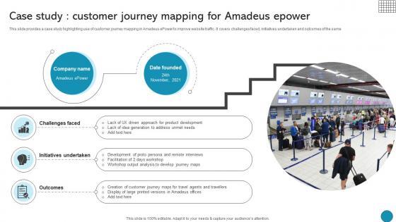 This slide provides a case study highlighting use of customer journey mapping in Amadeus ePower to improve website traffic. It covers challenges faced, initiatives undertaken and outcomes of the samePresent like a pro with Case Study Customer Journey Mapping For Amadeus Epower Driving Business Success Integrating Product. Create beautiful presentations together with your team, using our easy-to-use presentation slides. Share your ideas in real-time and make changes on the fly by downloading our templates. So whether you are in the office, on the go, or in a remote location, you can stay in sync with your team and present your ideas with confidence. With Slidegeeks presentation got a whole lot easier. Grab these presentations today. This slide provides a case study highlighting use of customer journey mapping in Amadeus ePower to improve website traffic. It covers challenges faced, initiatives undertaken and outcomes of the same