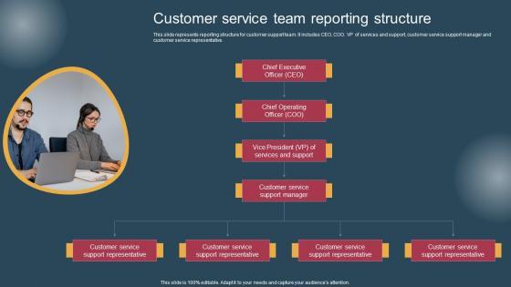 This slide represents reporting structure for customer support team. It includes CEO, COO. VP of services and support, customer service support manager and customer service representative. Slidegeeks is here to make your presentations a breeze with Customer Service Team Customer Support Services Mockup Pdf With our easy to use and customizable templates, you can focus on delivering your ideas rather than worrying about formatting. With a variety of designs to choose from, you are sure to find one that suits your needs. And with animations and unique photos, illustrations, and fonts, you can make your presentation pop. So whether you are giving a sales pitch or presenting to the board, make sure to check out Slidegeeks first. This slide represents reporting structure for customer support team. It includes CEO, COO. VP of services and support, customer service support manager and customer service representative.
