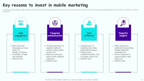 This Leveraging Mobile Marketing Strategies To Expand Customer Reach Complete Deck is a primer on how to capitalize on business opportunities through planning, innovation, and market intelligence. The content ready format of the complete deck will make your job as a decision maker a lot easier. Use this ready made PowerPoint Template to help you outline an extensive and legible plan to capture markets and grow your company on the right path, at an exponential pace. What is even more amazing is that this presentation is completely editable and 100 percent customizable. This Seventy five slide complete deck helps you impress a roomful of people with your expertise in business and even presentation. Craft such a professional and appealing presentation for that amazing recall value. Download now. Our Leveraging Mobile Marketing Strategies To Expand Customer Reach Complete Deck are topically designed to provide an attractive backdrop to any subject. Use them to look like a presentation pro.