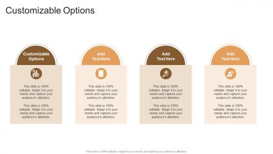 Introducing our well designed Customizable Options In Powerpoint And Google Slides Cpb. This PowerPoint design presents information on topics like Customizable Options. As it is predesigned it helps boost your confidence level. It also makes you a better presenter because of its high quality content and graphics. This PPT layout can be downloaded and used in different formats like PDF, PNG, and JPG. Not only this, it is available in both Standard Screen and Widescreen aspect ratios for your convenience. Therefore, click on the download button now to persuade and impress your audience. Our Customizable Options In Powerpoint And Google Slides Cpb are topically designed to provide an attractive backdrop to any subject. Use them to look like a presentation pro.