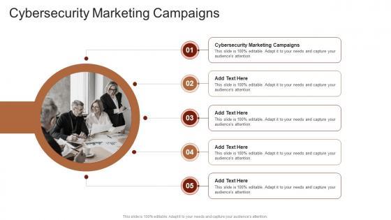 Presenting our innovatively-designed set of slides titled Cybersecurity Marketing Campaigns In Powerpoint And Google Slides Cpb. This completely editable PowerPoint graphic exhibits Cybersecurity Marketing Campaigns that will help you convey the message impactfully. It can be accessed with Google Slides and is available in both standard screen and widescreen aspect ratios. Apart from this, you can download this well-structured PowerPoint template design in different formats like PDF, JPG, and PNG. So, click the download button now to gain full access to this PPT design. Our Cybersecurity Marketing Campaigns In Powerpoint And Google Slides Cpb are topically designed to provide an attractive backdrop to any subject. Use them to look like a presentation pro.