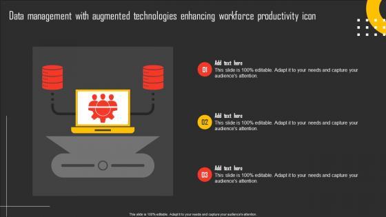 Pitch your topic with ease and precision using this Data Management With Augmented Technologies Enhancing Workforce Productivity Icon Guidelines Pdf. This layout presents information on Data Management Augmented, Technologies Enhancing, Workforce Productivity Icon. It is also available for immediate download and adjustment. So, changes can be made in the color, design, graphics or any other component to create a unique layout. Our Data Management With Augmented Technologies Enhancing Workforce Productivity Icon Guidelines Pdf are topically designed to provide an attractive backdrop to any subject. Use them to look like a presentation pro.