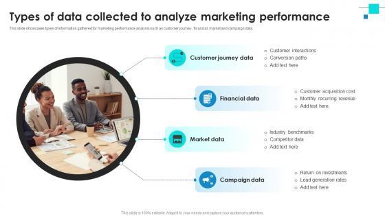 This slide showcases types of information gathered for marketing performance analysis such as customer journey , financial, market and campaign data. Slidegeeks is here to make your presentations a breeze with Project Benchmarking Process Types Of Data Collected To Analyze Marketing Performance CRP DK SS V With our easy-to-use and customizable templates, you can focus on delivering your ideas rather than worrying about formatting. With a variety of designs to choose from, you are sure to find one that suits your needs. And with animations and unique photos, illustrations, and fonts, you can make your presentation pop. So whether you are giving a sales pitch or presenting to the board, make sure to check out Slidegeeks first This slide showcases types of information gathered for marketing performance analysis such as customer journey , financial, market and campaign data.