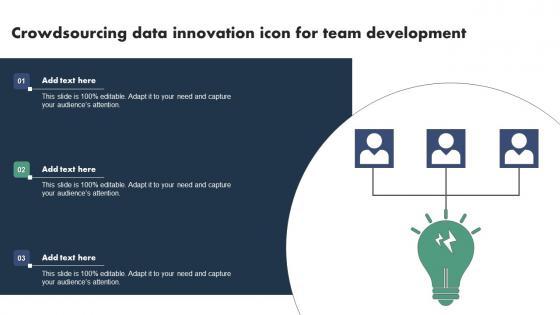 Pitch your topic with ease and precision using this Crowdsourcing Data Innovation Icon For Team Development Graphics Pdf This layout presents information on Crowdsourcing Data Innovation, Icon For Team Development It is also available for immediate download and adjustment. So, changes can be made in the color, design, graphics or any other component to create a unique layout. Our Crowdsourcing Data Innovation Icon For Team Development Graphics Pdf are topically designed to provide an attractive backdrop to any subject. Use them to look like a presentation pro.