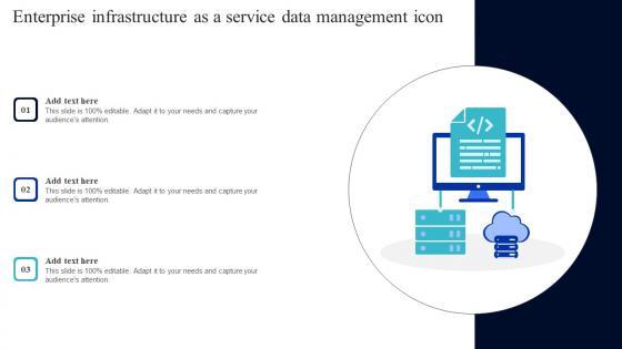 Showcasing this set of slides titled Enterprise Infrastructure As A Service Data Management Icon Professional Pdf. The topics addressed in these templates are Enterprise Infrastructure, As A Service, Data Management, Icon. All the content presented in this PPT design is completely editable. Download it and make adjustments in color, background, font etc. as per your unique business setting. Our Enterprise Infrastructure As A Service Data Management Icon Professional Pdf are topically designed to provide an attractive backdrop to any subject. Use them to look like a presentation pro.
