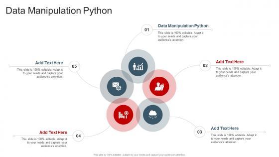 Introducing our well designed Data Manipulation Python In Powerpoint And Google Slides Cpb. This PowerPoint design presents information on topics like Data Manipulation Python. As it is predesigned it helps boost your confidence level. It also makes you a better presenter because of its high quality content and graphics. This PPT layout can be downloaded and used in different formats like PDF, PNG, and JPG. Not only this, it is available in both Standard Screen and Widescreen aspect ratios for your convenience. Therefore, click on the download button now to persuade and impress your audience. Our Data Manipulation Python In Powerpoint And Google Slides Cpb are topically designed to provide an attractive backdrop to any subject. Use them to look like a presentation pro.