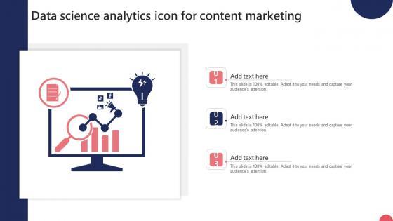 Showcasing this set of slides titled Data Science Analytics Icon For Content Marketing Ppt Slides Infographic Template Pdf. The topics addressed in these templates are Data Science Analytics Icon, Content Marketing. All the content presented in this PPT design is completely editable. Download it and make adjustments in color, background, font etc. as per your unique business setting. Our Data Science Analytics Icon For Content Marketing Ppt Slides Infographic Template Pdf are topically designed to provide an attractive backdrop to any subject. Use them to look like a presentation pro.