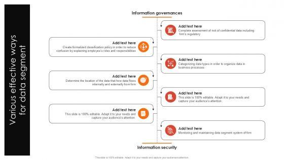 Formulating a presentation can take up a lot of effort and time, so the content and message should always be the primary focus. The visuals of the PowerPoint can enhance the presenters message, so our Various Effective Ways For Data Segment PPT Sample SS was created to help save time. Instead of worrying about the design, the presenter can concentrate on the message while our designers work on creating the ideal templates for whatever situation is needed. Slidegeeks has experts for everything from amazing designs to valuable content, we have put everything into Various Effective Ways For Data Segment PPT Sample SS. Our Various Effective Ways For Data Segment PPT Sample SS are topically designed to provide an attractive backdrop to any subject. Use them to look like a presentation pro.
