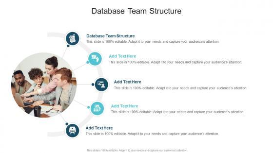 Introducing our well designed Database Team Structure In Powerpoint And Google Slides Cpb. This PowerPoint design presents information on topics like Database Team Structure. As it is predesigned it helps boost your confidence level. It also makes you a better presenter because of its high quality content and graphics. This PPT layout can be downloaded and used in different formats like PDF, PNG, and JPG. Not only this, it is available in both Standard Screen and Widescreen aspect ratios for your convenience. Therefore, click on the download button now to persuade and impress your audience. Our Database Team Structure In Powerpoint And Google Slides Cpb are topically designed to provide an attractive backdrop to any subject. Use them to look like a presentation pro.