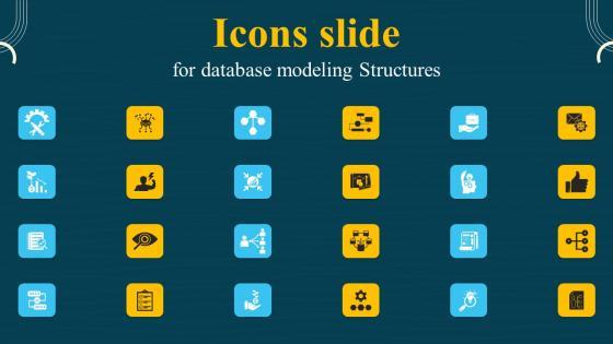 Are you searching for a Icons Slide For Database Modeling Structures Guidelines Pdf that is uncluttered, straightforward, and original Its easy to edit, and you can change the colors to suit your personal or business branding. For a presentation that expresses how much effort you have put in, this template is ideal With all of its features, including tables, diagrams, statistics, and lists, its perfect for a business plan presentation. Make your ideas more appealing with these professional slides. Download Icons Slide For Database Modeling Structures Guidelines Pdf from Slidegeeks today. Our Icons Slide For Database Modeling Structures Guidelines Pdf are topically designed to provide an attractive backdrop to any subject. Use them to look like a presentation pro.