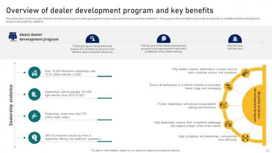 This slide covers brief summary of dealer development program to help auto agents increase sales and enhance customer satisfaction. The purpose of this template is to provide an overview on benefits of dealer development program along with key statistics. Take your projects to the next level with our ultimate collection of Ultimate Guide To Developing Overview Of Dealer Development Program And Key Strategy SS V. Slidegeeks has designed a range of layouts that are perfect for representing task or activity duration, keeping track of all your deadlines at a glance. Tailor these designs to your exact needs and give them a truly corporate look with your own brand colors they will make your projects stand out from the rest This slide covers brief summary of dealer development program to help auto agents increase sales and enhance customer satisfaction. The purpose of this template is to provide an overview on benefits of dealer development program along with key statistics.