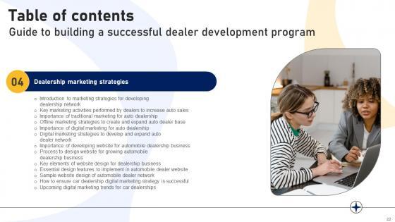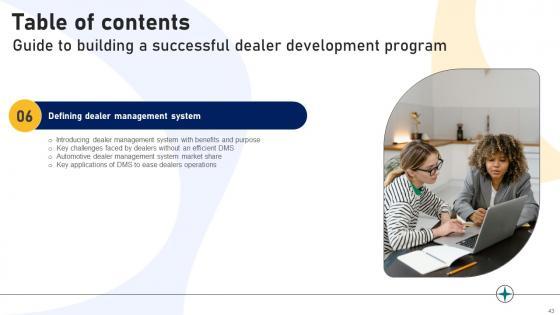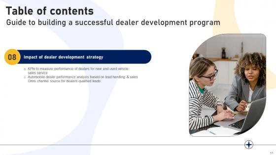 This Guide To Building A Successful Dealer Development Program Strategy CD V is a primer on how to capitalize on business opportunities through planning, innovation, and market intelligence. The content-ready format of the complete deck will make your job as a decision-maker a lot easier. Use this ready-made PowerPoint Template to help you outline an extensive and legible plan to capture markets and grow your company on the right path, at an exponential pace. What is even more amazing is that this presentation is completely editable and 100 percent customizable. This sixty eight slide complete deck helps you impress a roomful of people with your expertise in business and even presentation. Craft such a professional and appealing presentation for that amazing recall value. Download now. Our Guide To Building A Successful Dealer Development Program Strategy CD V are topically designed to provide an attractive backdrop to any subject. Use them to look like a presentation pro.