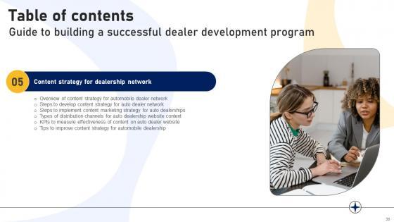 If your project calls for a presentation, then Slidegeeks is your go-to partner because we have professionally designed, easy-to-edit templates that are perfect for any presentation. After downloading, you can easily edit Table Of Contents For Guide To Building A Successful Dealer Development Program Strategy SS V and make the changes accordingly. You can rearrange slides or fill them with different images. Check out all the handy templates Our Table Of Contents For Guide To Building A Successful Dealer Development Program Strategy SS V are topically designed to provide an attractive backdrop to any subject. Use them to look like a presentation pro.