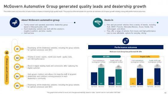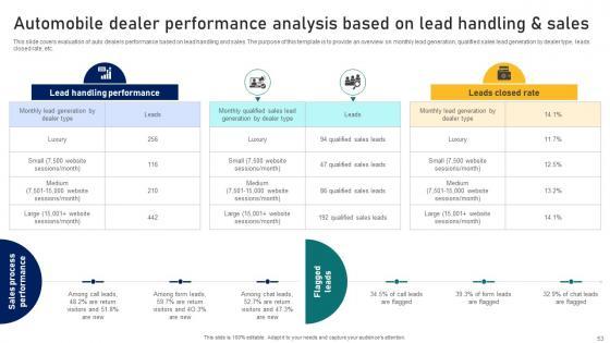 This slide covers evaluation of auto dealers performance based on lead handling and sales. The purpose of this template is to provide an overview on monthly lead generation, qualified sales lead generation by dealer type, leads closed rate, etc. Boost your pitch with our creative Ultimate Guide To Developing Automobile Dealer Performance Analysis Based On Lead Strategy SS V. Deliver an awe-inspiring pitch that will mesmerize everyone. Using these presentation templates you will surely catch everyones attention. You can browse the ppts collection on our website. We have researchers who are experts at creating the right content for the templates. So you do not have to invest time in any additional work. Just grab the template now and use them. This slide covers evaluation of auto dealers performance based on lead handling and sales. The purpose of this template is to provide an overview on monthly lead generation, qualified sales lead generation by dealer type, leads closed rate, etc.