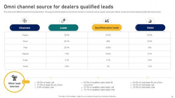 This slide covers different channels for lead generation. The purpose of this template is to provide an overview on channels such as organic, direct, paid, referral, emails and social media along with other lead sources. Here you can discover an assortment of the finest PowerPoint and Google Slides templates. With these templates, you can create presentations for a variety of purposes while simultaneously providing your audience with an eye-catching visual experience. Download Ultimate Guide To Developing Omni Channel Source For Dealers Qualified Leads Strategy SS V to deliver an impeccable presentation. These templates will make your job of preparing presentations much quicker, yet still, maintain a high level of quality. Slidegeeks has experienced researchers who prepare these templates and write high-quality content for you. Later on, you can personalize the content by editing the Ultimate Guide To Developing Omni Channel Source For Dealers Qualified Leads Strategy SS V. This slide covers different channels for lead generation. The purpose of this template is to provide an overview on channels such as organic, direct, paid, referral, emails and social media along with other lead sources.