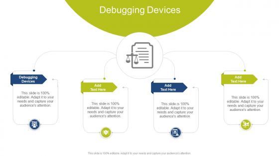 Introducing our well-designed Debugging Devices In Powerpoint And Google Slides Cpb. This PowerPoint design presents information on topics like Debugging Devices. As it is predesigned it helps boost your confidence level. It also makes you a better presenter because of its high-quality content and graphics. This PPT layout can be downloaded and used in different formats like PDF, PNG, and JPG. Not only this, it is available in both Standard Screen and Widescreen aspect ratios for your convenience. Therefore, click on the download button now to persuade and impress your audience. Our Debugging Devices In Powerpoint And Google Slides Cpb are topically designed to provide an attractive backdrop to any subject. Use them to look like a presentation pro.