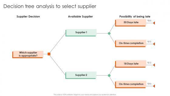 Make sure to capture your audiences attention in your business displays with our gratis customizable Effective Business Project Risk Mitigation Plan Decision Tree Analysis To Select Supplier Microsoft PDF. These are great for business strategies, office conferences, capital raising or task suggestions. If you desire to acquire more customers for your tech business and ensure they stay satisfied, create your own sales presentation with these plain slides.