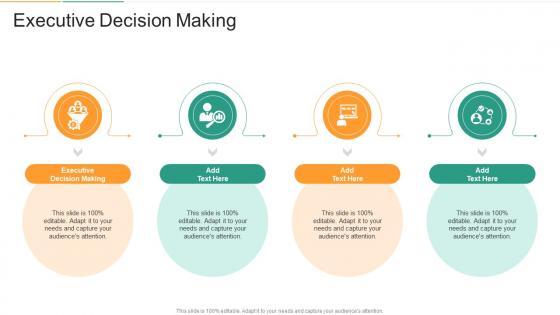 Introducing our well-designed Executive Decision Making In Powerpoint And Google Slides Cpb. This PowerPoint design presents information on topics like Executive Decision Making. As it is predesigned it helps boost your confidence level. It also makes you a better presenter because of its high-quality content and graphics. This PPT layout can be downloaded and used in different formats like PDF, PNG, and JPG. Not only this, it is available in both Standard Screen and Widescreen aspect ratios for your convenience. Therefore, click on the download button now to persuade and impress your audience. Our Executive Decision Making In Powerpoint And Google Slides Cpb are topically designed to provide an attractive backdrop to any subject. Use them to look like a presentation pro.
