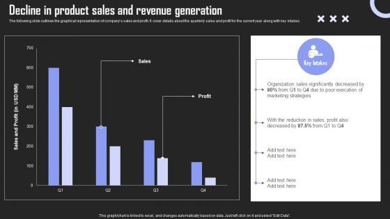 The following slide outlines the graphical representation of companys sales and profit. It cover details about the quarterly sales and profit for the current year along with key intakes. Want to ace your presentation in front of a live audience Our Brand Building Techniques Enhance Customer Engagement Loyalty Decline In Product Sales And Revenue Ideas PDF can help you do that by engaging all the users towards you. Slidegeeks experts have put their efforts and expertise into creating these impeccable powerpoint presentations so that you can communicate your ideas clearly. Moreover, all the templates are customizable, and easy to edit and downloadable. Use these for both personal and commercial use.