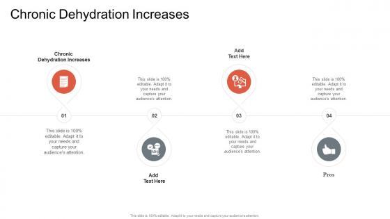 Introducing our well-designed Chronic Dehydration Increases In Powerpoint And Google Slides Cpb. This PowerPoint design presents information on topics like Chronic Dehydration Increases. As it is predesigned it helps boost your confidence level. It also makes you a better presenter because of its high-quality content and graphics. This PPT layout can be downloaded and used in different formats like PDF, PNG, and JPG. Not only this, it is available in both Standard Screen and Widescreen aspect ratios for your convenience. Therefore, click on the download button now to persuade and impress your audience. Our Chronic Dehydration Increases In Powerpoint And Google Slides Cpb are topically designed to provide an attractive backdrop to any subject. Use them to look like a presentation pro.