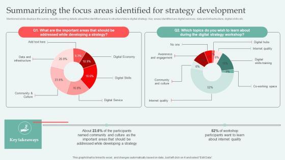 Mentioned slide displays the survey results covering details about the identified areas to structure future digital strategy. Key areas identified are digital services, data and infrastructure, digital skills etc. Are you searching for a Summarizing The Focus Areas Digital Approaches To Increase Business Growth Demonstration Pdf that is uncluttered, straightforward, and original Its easy to edit, and you can change the colors to suit your personal or business branding. For a presentation that expresses how much effort you have put in, this template is ideal With all of its features, including tables, diagrams, statistics, and lists, its perfect for a business plan presentation. Make your ideas more appealing with these professional slides. Download Summarizing The Focus Areas Digital Approaches To Increase Business Growth Demonstration Pdf from Slidegeeks today. Mentioned slide displays the survey results covering details about the identified areas to structure future digital strategy. Key areas identified are digital services, data and infrastructure, digital skills etc.