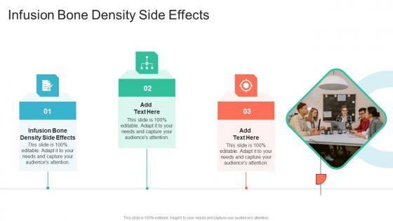 Introducing our well designed Infusion Bone Density Side Effects In Powerpoint And Google Slides Cpb. This PowerPoint design presents information on topics like Infusion Bone Density Side Effects. As it is predesigned it helps boost your confidence level. It also makes you a better presenter because of its high-quality content and graphics. This PPT layout can be downloaded and used in different formats like PDF, PNG, and JPG. Not only this, it is available in both Standard Screen and Widescreen aspect ratios for your convenience. Therefore, click on the download button now to persuade and impress your audience. Our Infusion Bone Density Side Effects In Powerpoint And Google Slides Cpb are topically designed to provide an attractive backdrop to any subject. Use them to look like a presentation pro.