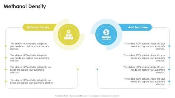 Introducing our well designed Methanol Density In Powerpoint And Google Slides Cpb. This PowerPoint design presents information on topics like Methanol Density. As it is predesigned it helps boost your confidence level. It also makes you a better presenter because of its high quality content and graphics. This PPT layout can be downloaded and used in different formats like PDF, PNG, and JPG. Not only this, it is available in both Standard Screen and Widescreen aspect ratios for your convenience. Therefore, click on the download button now to persuade and impress your audience. Our Methanol Density In Powerpoint And Google Slides Cpb are topically designed to provide an attractive backdrop to any subject. Use them to look like a presentation pro.