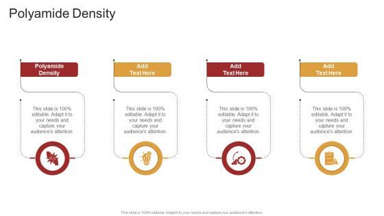 Introducing our well designed Polyamide Density In Powerpoint And Google Slides Cpb. This PowerPoint design presents information on topics like Polyamide Density. As it is predesigned it helps boost your confidence level. It also makes you a better presenter because of its high quality content and graphics. This PPT layout can be downloaded and used in different formats like PDF, PNG, and JPG. Not only this, it is available in both Standard Screen and Widescreen aspect ratios for your convenience. Therefore, click on the download button now to persuade and impress your audience. Our Polyamide Density In Powerpoint And Google Slides Cpb are topically designed to provide an attractive backdrop to any subject. Use them to look like a presentation pro.