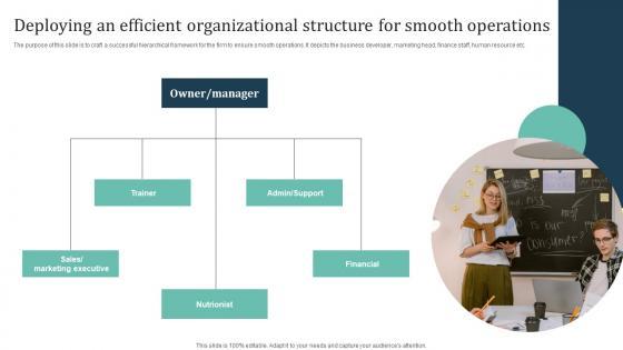 The purpose of this slide is to craft a successful hierarchical framework for the firm to ensure smooth operations. It depicts the facility administrator, marketing head, accountant, security guards, care manager, human resource etc. From laying roadmaps to briefing everything in detail, our templates are perfect for you. You can set the stage with your presentation slides. All you have to do is download these easy-to-edit and customizable templates. Deploying An Efficient Organizational Structure Childcare Business Plan Download Pdf will help you deliver an outstanding performance that everyone would remember and praise you for. Do download this presentation today. The purpose of this slide is to craft a successful hierarchical framework for the firm to ensure smooth operations. It depicts the facility administrator, marketing head, accountant, security guards, care manager, human resource etc.